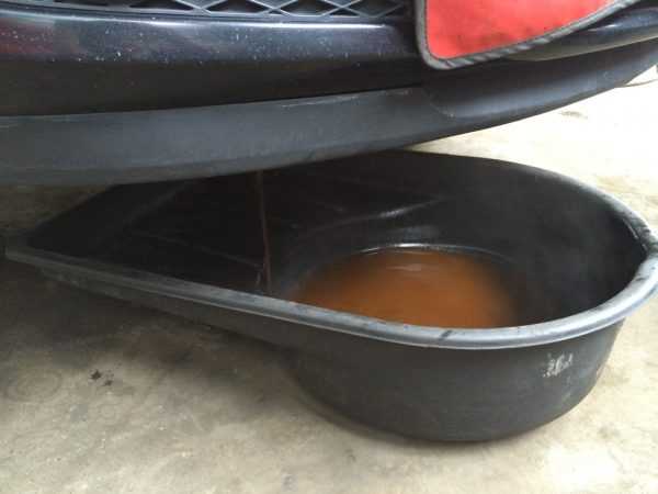 - Берем тот же самый железный таз, чтобы в него слить охлаждающую жидкость.