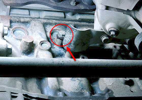 - сливная пробка находится внизу сбоку блока двигателя на ровной поверхности;