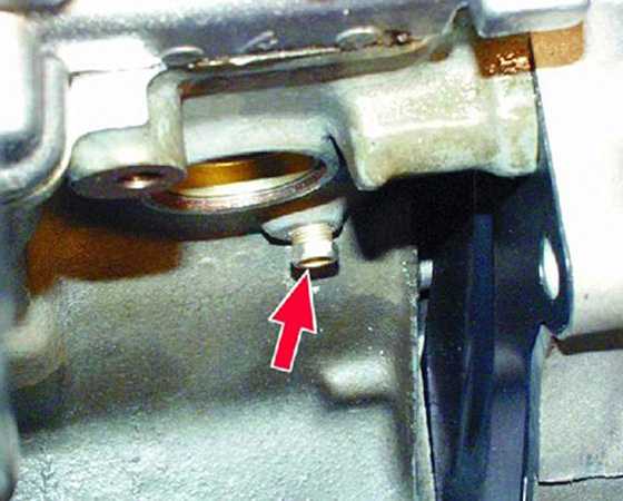 - под сливной пробкой отсутствуют иные элементы крепежа, скобы, другие устройства, она не до конца закручена в блок, имеет специальную резьбу;
