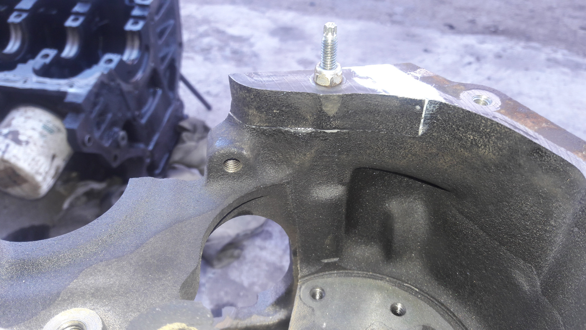 Изношенный цилиндр двигателя внутреннего сгоранияВ малых дизелях трещины или изломы в поперечных перегородках или других частях рамы, изготовленной из чугуна, ремонтируют постановкой металлических накладок. Накладки с поперечной перегородкой и ребрами жесткости соединяют призонными болтами.