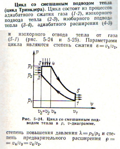Цикл, включающий два последовательных термодинамических процесса сгорания топлива – сначала по изохоре, а затем по изобаре, называют циклом Сабатэ – Тринклера. Пожалуй, это название цикла тоже можно оспорить, поскольку французский инженер Сабатэ (Сабатье) запатентовал в