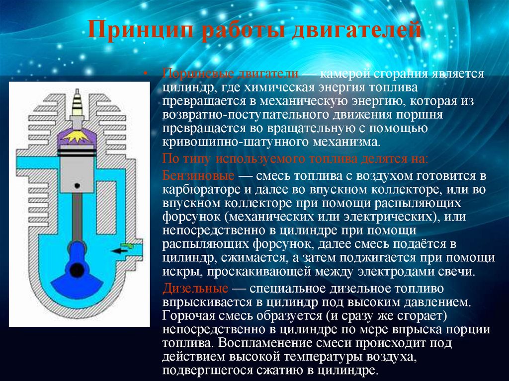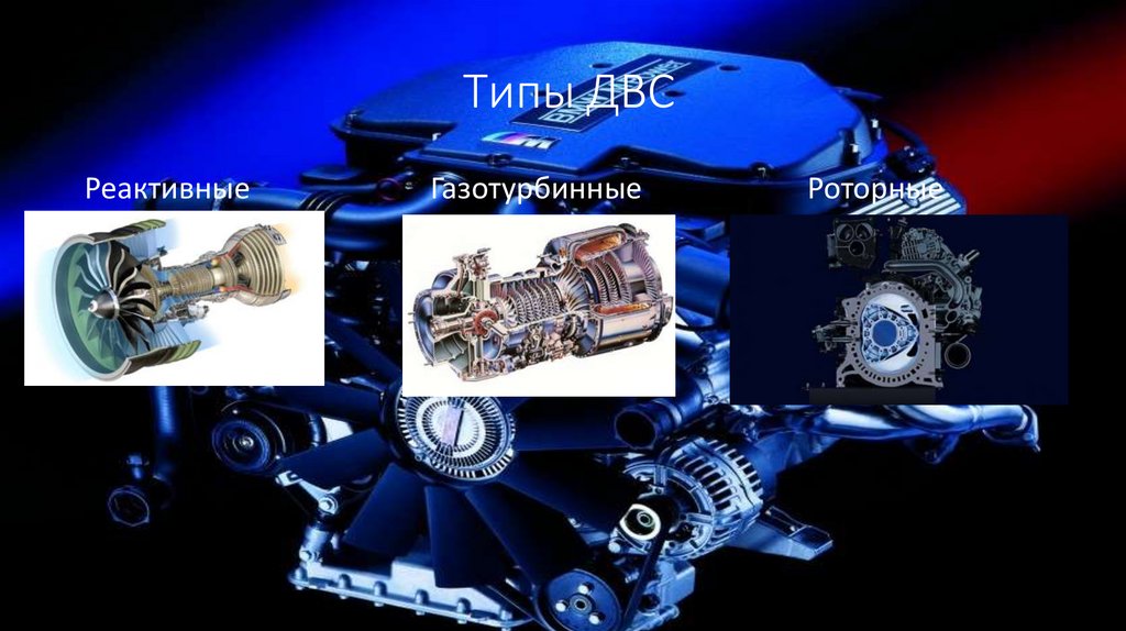 Поршневой ДВС Роторный ДВС Газотурбинный ДВСа) По назначению — делятся на транспортные, стационарные и специальные.