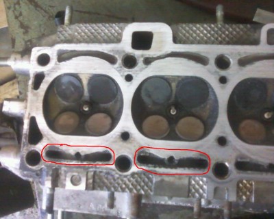 Участки, образующие верхний свод камеры сгорания, подвергаются высоким тепловым и механическим нагрузкам. Поэтому, со временем, в корпусе головки могут образовываться трещины.