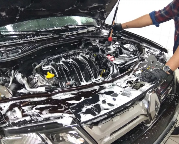 После обработки необходимо подождать некоторое время, рекомендованное производителем автохимии. Внимание: не рекомендуется мыть горячий двигатель.