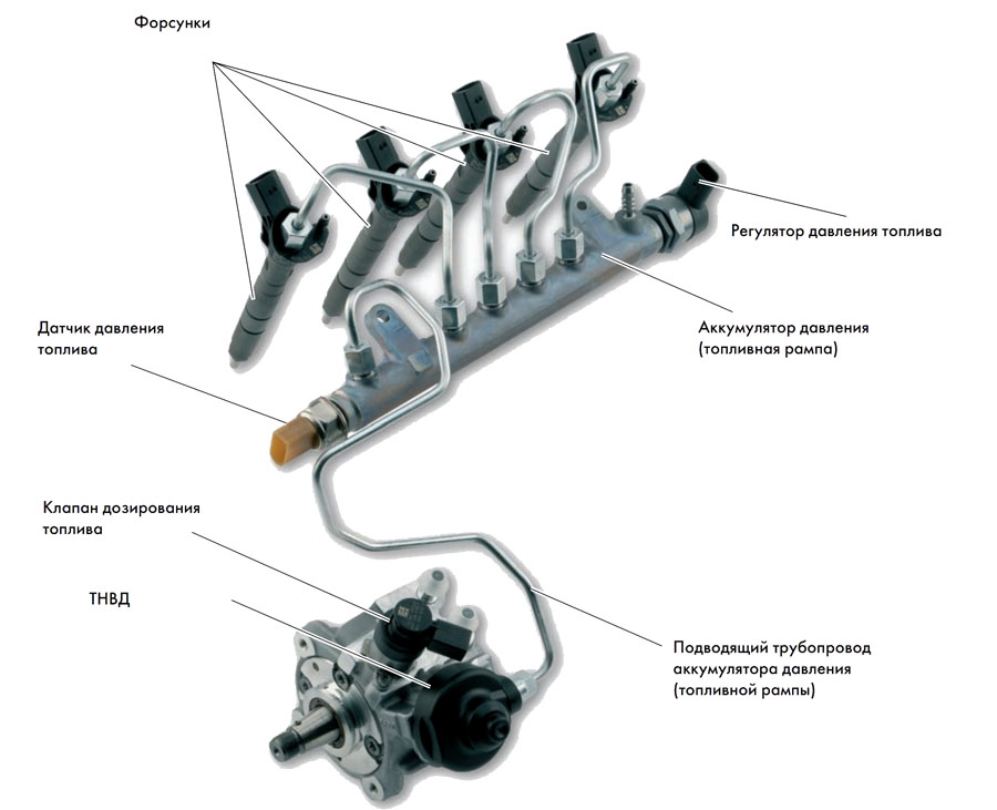 Эту технологию, на закате ХХ века разработали немецкие специалисты компании «Бош». Главная задача «Рейл» – это подача топлива от общего давления рампы к форсункам.
