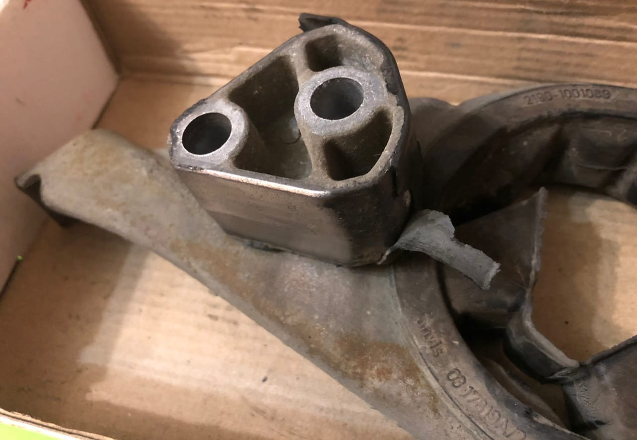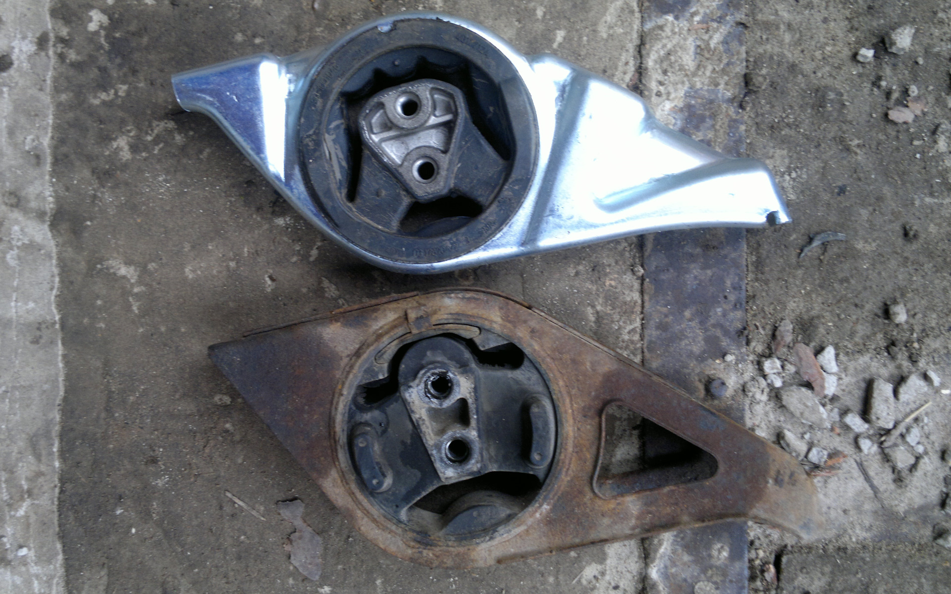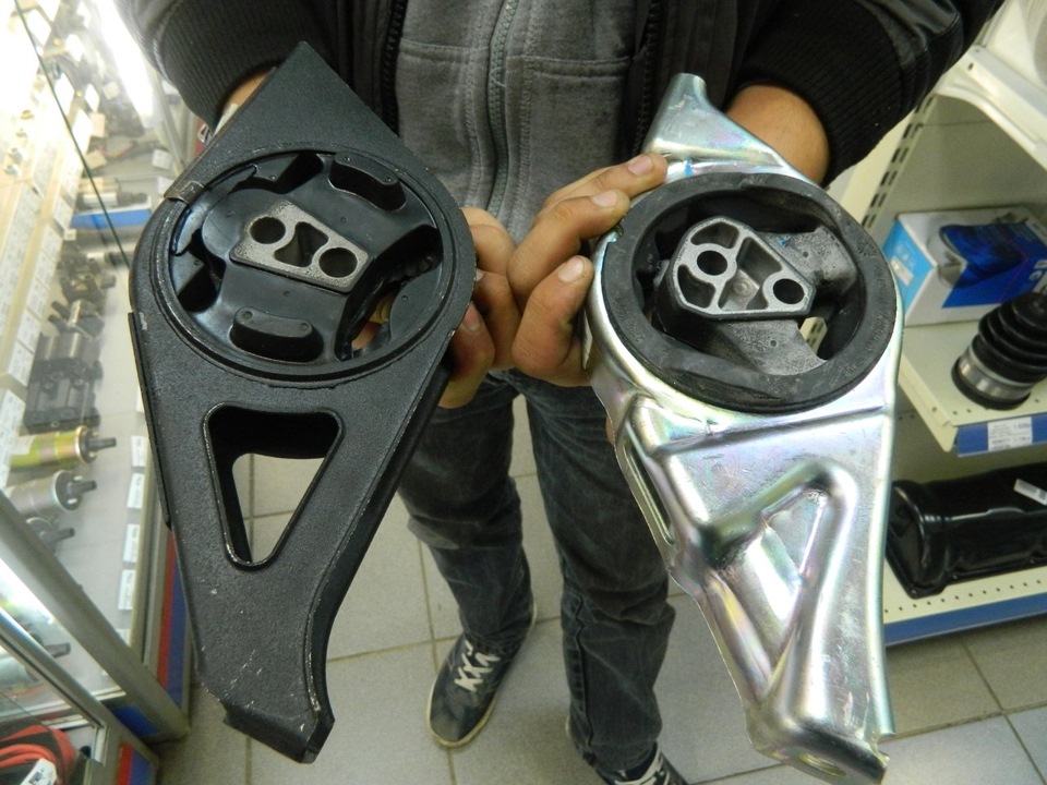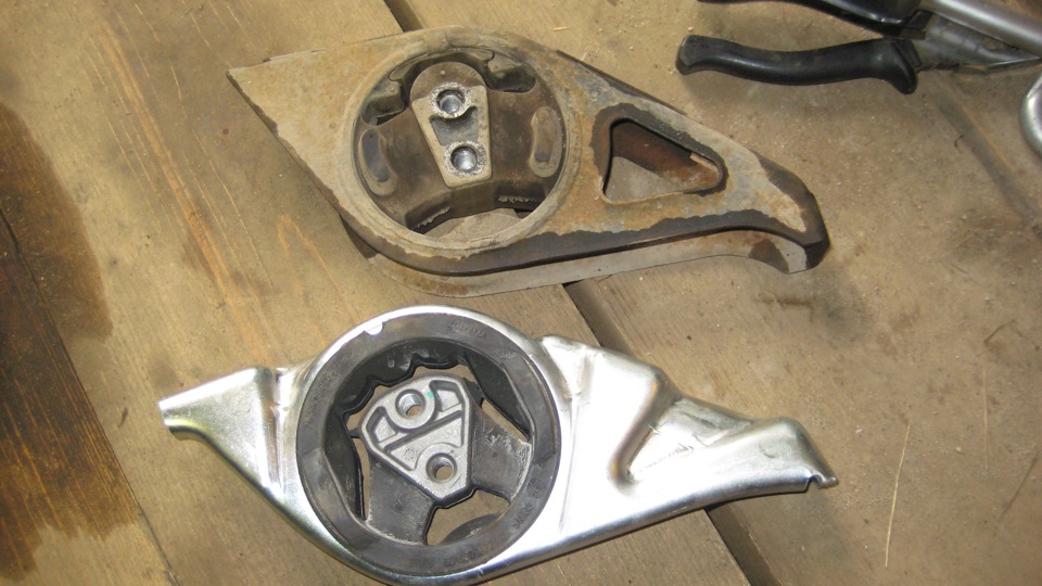 На новой резиновой подвеске более мощная средняя металлическая часть для соединения с рычагом крепления. Боковые же разрезы в резиновом наполнителе служат для распределения равномерной нагрузки. От такой формы резинового наполнителя уменьшается вибрация от двигателя на кузов.