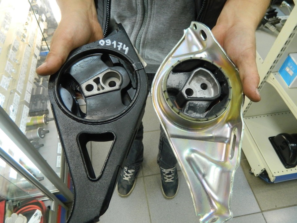 Если приставить друг к другу обе подушки двигателя левую с правой, то хорошо заметно, что они выполнены зеркально.