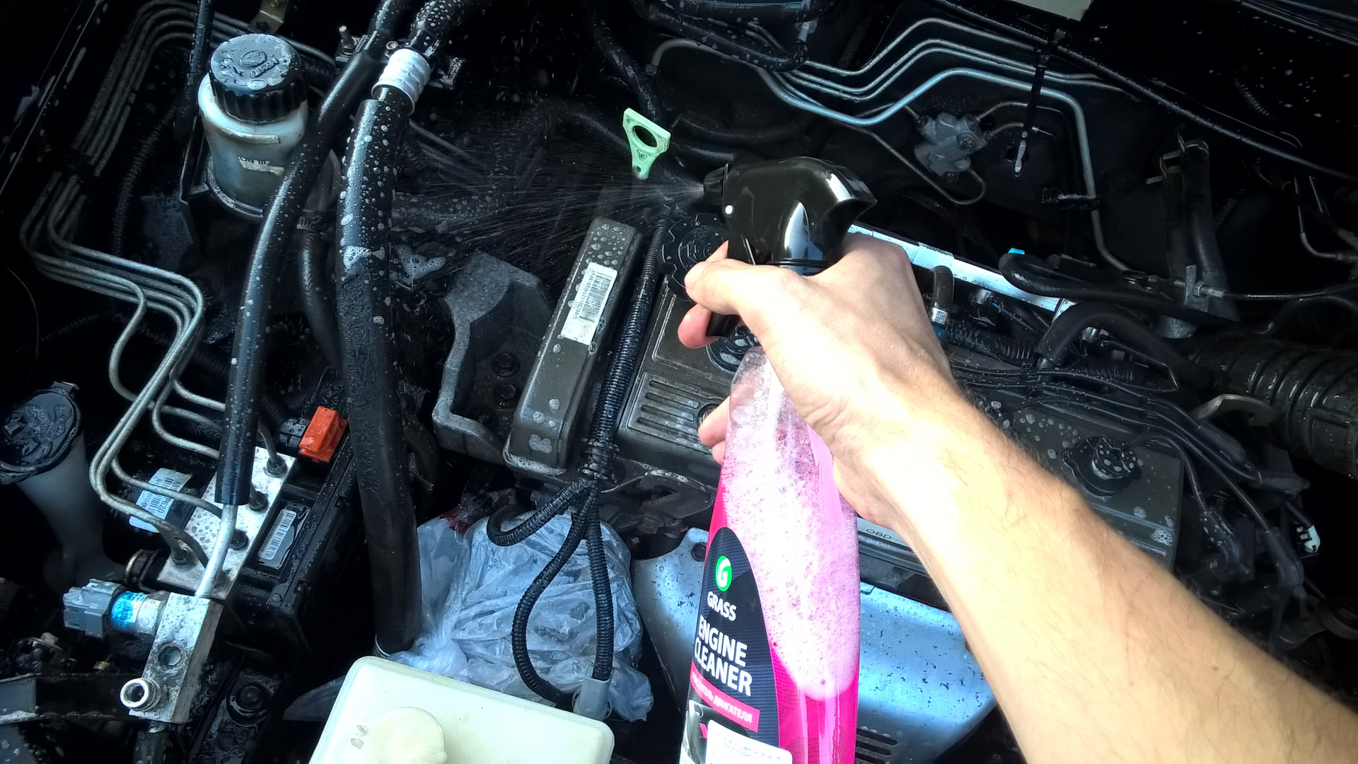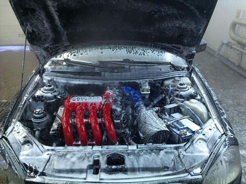 — нужно, по возможности, исключить подобного сервиса — мойки двигателя в заведении заведений. Гораздо предпочтительнее осуществить самим, вооружившись мощными химикатами и простейшими приспособлениями (например, старой зубной щеткой для очистки труднодоступных мест).