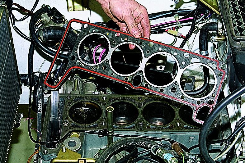 Дальнейшие проверки возможны только со снятой головкой блока. Оценивают состояние прокладки, плоскостей головки и блока. Прогар прокладки часто сопровождается деформацией плоскости головки, особенно если дефекту предшествовал перегрев двигателя (например, из-за неисправности термостата, вентилятора и других причин).