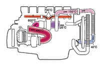 Другая проблема, которую пришлось решать при развитии технологий дизельных турбин, состояла в избыточной детонации. Детонация эта возникала из-за резкого увеличения температуры в рабочих полостях цилиндров при нагнетании туда дополнительных масс сжатого воздуха, особенно на завершающей стадии такта. Решать данную проблему в системе призван промежуточный охладитель наддувочного воздуха (интеркулер).