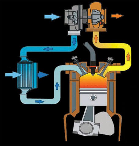 Просто увеличить количество топлива недостаточно, если при этом не увеличить объем воздуха, необходимого для максимально полного сгорания топлива. Использование турбокомпрессора дает возможность доставить больший объем воздуха в цилиндры, предварительно сжав его.