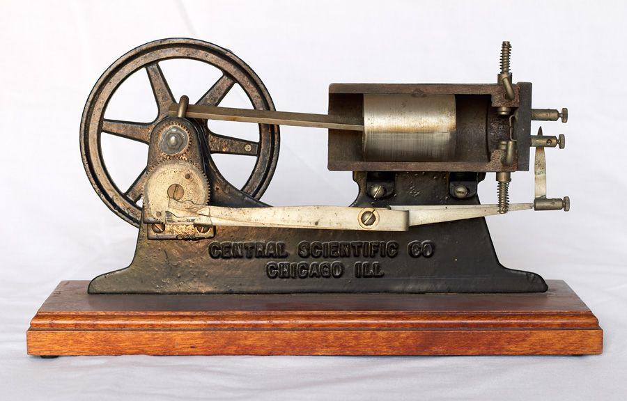 Паровой двигатель — двигатель внешнего сгорания. Во-первых, внешний огонь нагревает жидкость. Затем, когда жидкость расширяется в газ, это давление создает энергию.