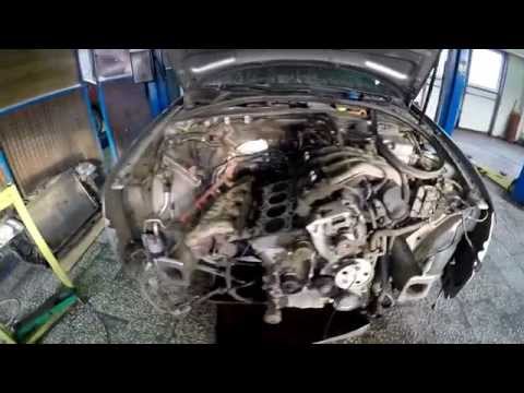 Зацепив тросы (или цепи) подъёмного устройства за рымы, начинаем потихоньку давать натяжку тросам и извлекать силовой агрегат из моторного отсека. При этом следим за выходом коробки передач из своего туннеля, стараясь, чтобы коробка передач не задевала за кузов (туннель) — при этом подаём мотор чуть вперёд.