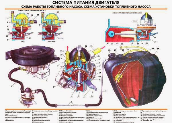 Цветная схема ВАЗ-2107 карбюратор, трамблёр