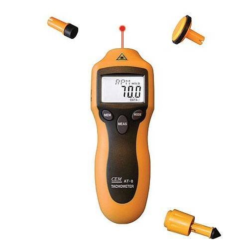 Бесконтактный тип тахометра посылает луч света, который каждый раз отражается от ленты и совершает полный оборот. Приемник считает отражение в течение всего процесса и измеряет скорость вращения в об/мин. Это компактный, точный и эффективный тахометр.