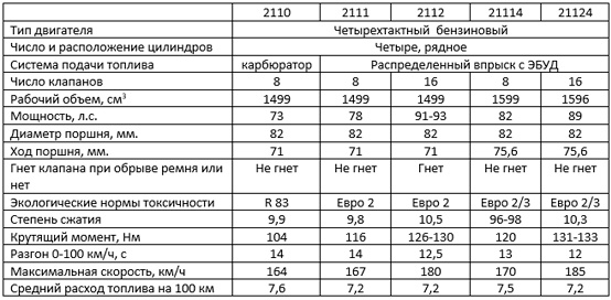 Основные параметры и характеристики двигателя ВАЗ-2110