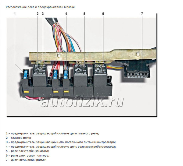 В середине этого ряда будет находиться реле бензонасоса, а слева от него предохранитель, защищающий электрические цепи бензонасоса и форсунок.