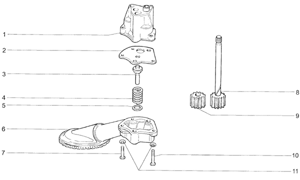 Вращаясь, шестерни захватывают масло и под давлением подают его в двигатель. Производительность насоса зависит от оборотов мотора и вязкости масла. Конструкцией насоса предусмотрен редукционный клапан, который срабатывает при превышении давлением допустимой величины и направляет часть масла обратно в поддон.
