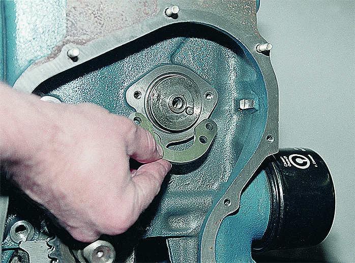3) Следом когда болты будут вывернуты снимите насос, и обратите на него своё внимание, потому что на нём должна будет присутствовать прокладка, которую так же нужно будет снять и если она будет деформирована тогда замените её на новую.