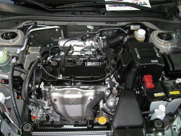 Под капотом автомобиля в кузове седан можно было встретить 1.5-литровый мотор под маркировкой 4G18. Рабочий объем установки составляет 1584 куб. см. Это наиболее массовый представитель линейки движков Mitsubishi Orion. За основу двигателя был взять точно такой же блок цилиндров, как и в моторе 4G15. Производитель увеличил длину хода поршня до 87.3 мм, а также расточил цилиндры под 76 мм. Блок цилиндров изготовлен из чугуна, а накрывающая его сверху ГБЦ вылита из алюминия. Это 16-клапанная головка блока цилиндров с одним распределительным валом SOHC. Есть гидравлические компенсаторы, поэтому к качеству моторного масла следует обращать повышенное внимание. Газораспределительный вал вращается от ремня ГРМ, срок службы которого составляет в лучшем случае 90 тыс.