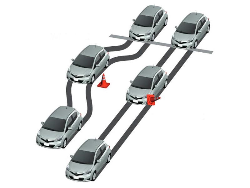 Шины на подопытных Логанах были одинаковыми — Barum Brilliantis размерностью 185/70 R14. Для пущей убедительности было сымитировано скользкое покрытие — пластик, смоченный мыльным раствором. В «створ ворот» нужно было въехать на скорости 40 км/ч и тут же начать экстренное (сильный удар по педали тормоза — водитель «испугался») торможение с одновременным перестроением.