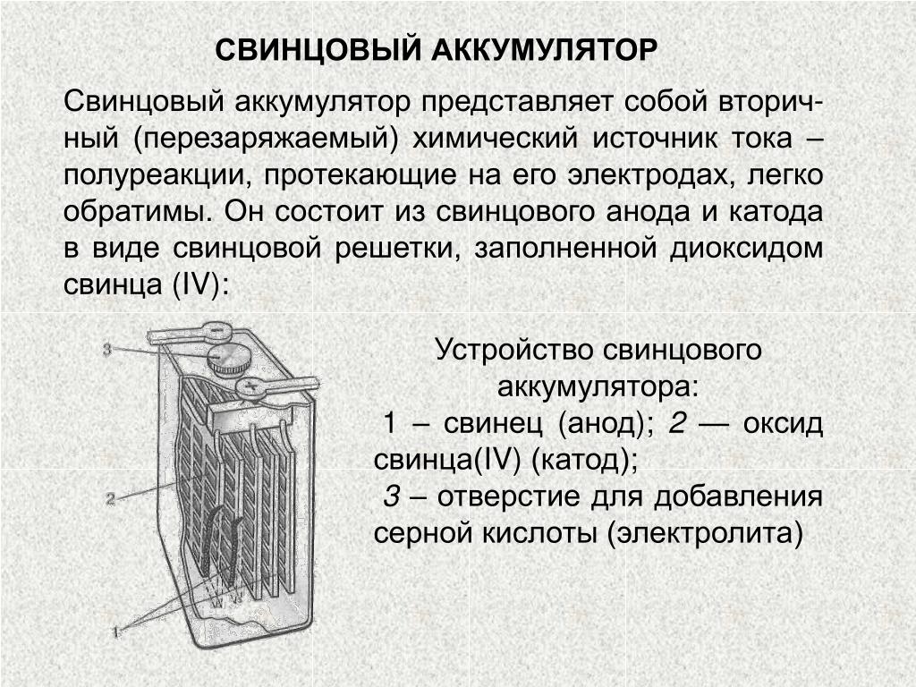 Важно отметить, что процессы разряда и заряда изменяют химический состав электродов. Электролит же при этом не испытывает никаких изменений.