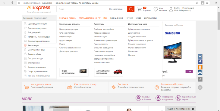 Алиэкспресс – интернет-магазин, завоевавший популярность своим богатым ассортиментом и вполне доступными (а нередко и просто низкими) ценами на предлагаемые товары. Кроме этого, он предлагает своим покупателям скидки (особенно для пользователей мобильного приложения) и бесплатную доставку посылок. Примечательностью Алиэкспресса является то, что в этом интернет-магазине можно найти все: косметику, бижутерию, игрушки, одежду, электро- и бытовую технику, а также запасные части и гаджеты для автомобилей. Причем, цены, как правило, на этом сайте на все товары значительно ниже тех, что представлены в обычных магазинах. Кроме этого, следует упомянуть, что Алиэкспресс поддерживает своих клиентов и в случае возникновения спорных ситуаций (отправки некачественного товара или отсутствия товара) решает их в основном в пользу клиента.