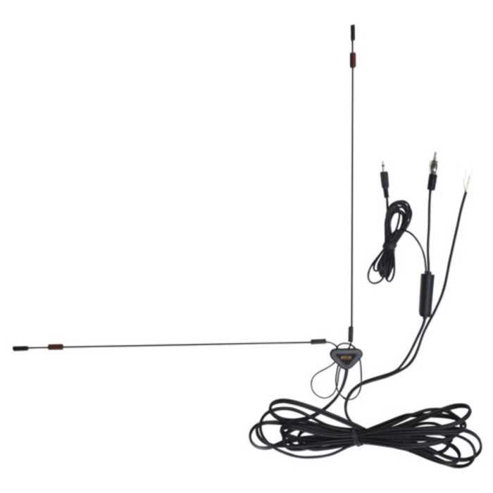 Это простой провод FM 75 Ом антенна, 4.9 футов (1,5 метра) в длину со стандартным вставным F-соединителем на конец, который вставляется в заднюю часть тюнера. Это не усиленная антенна.