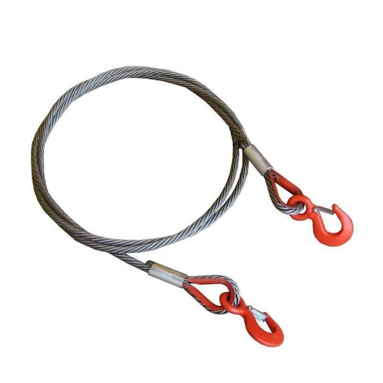 Максимальная нагрузка 2,5 тонны. Длина троса 4,0 метра. Очень надежное крепление прицепных крюков, они вплетены в отдельные пряди троса и в друг друга. Оторвать такое крепление невозможно, будет рваться сам трос полностью. Места вплетения дополнительно закрыты трубчатыми чехлами. Длина данного троса соответствует ПДД, но при букировке желательно иметь трос подлиннее.