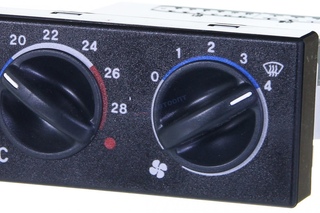 Левая рукоятка отвечает за включение температурного режима в салоне транспортного средства. В зависимости от положения рукоятки подаётся информация о заданной температуре воздуха на микроредуктор привода заслонки и с помощью контроллера устанавливается необходимое положение задвижки.