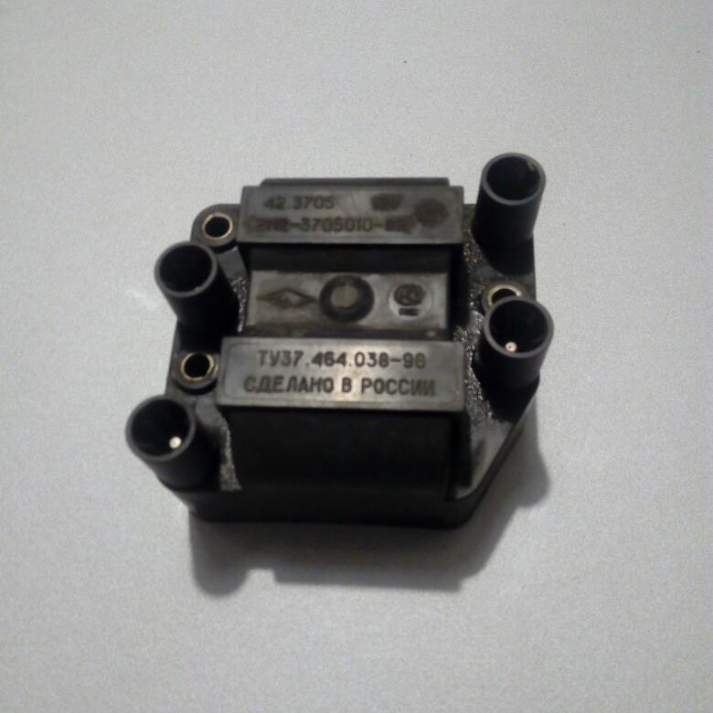 В состав этого устройства входят две катушки, вырабатывающие высокое напряжение. В этом им помогает двухканальный электронный переключатель. Все элементы заключены в корпус из прочного пластика. На корпусе расположен низковольтный разъем для подачи управляющих импульсов и подключения напряжения питания. Кроме того, здесь есть выводы для подключения высоковольтных проводов, которые подключаются к свечам.