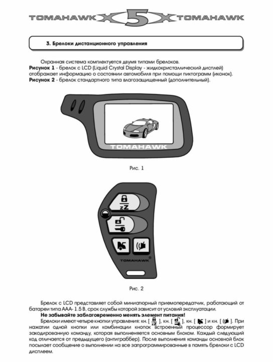 Инструкция по брелку Tomahawk: скачать и читать мануал PDF