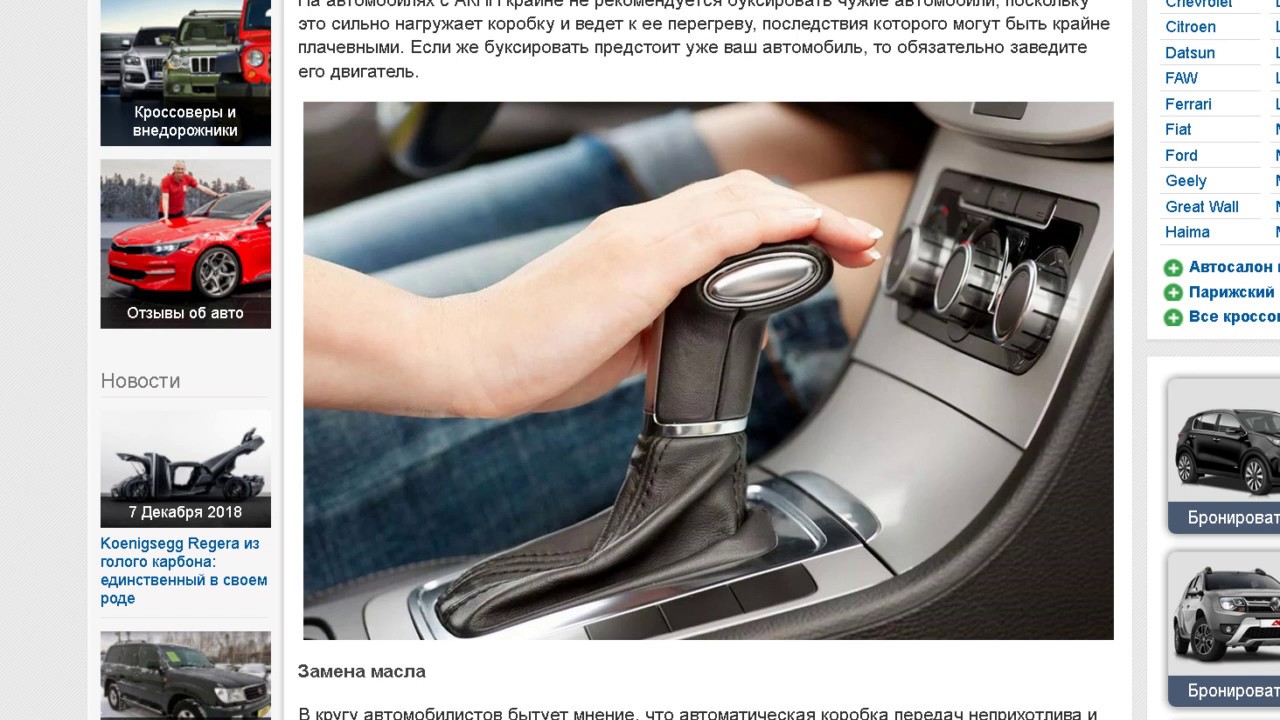 Как видно, перед буксировкой автомобиля с АКПП в случае поломки лучше всего ознакомиться с инструкцией к данному автомобилю. Дело в том, что не все транспортные средства, оборудованные автоматической коробкой переключения передач, можно буксировать.