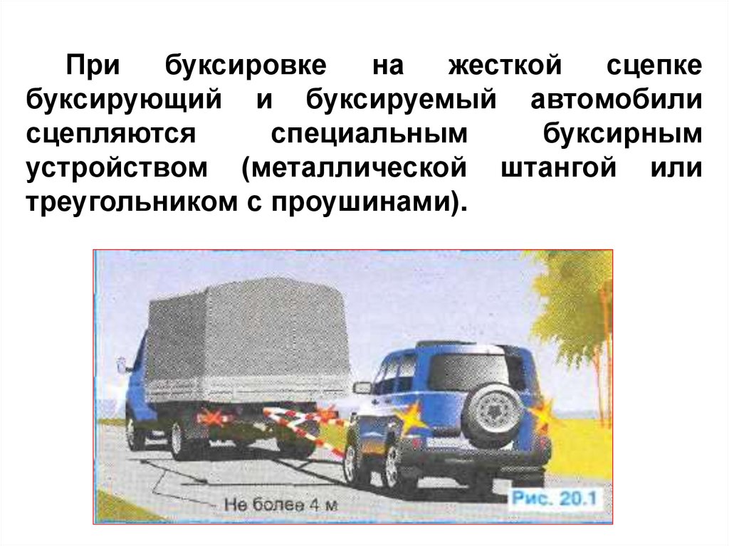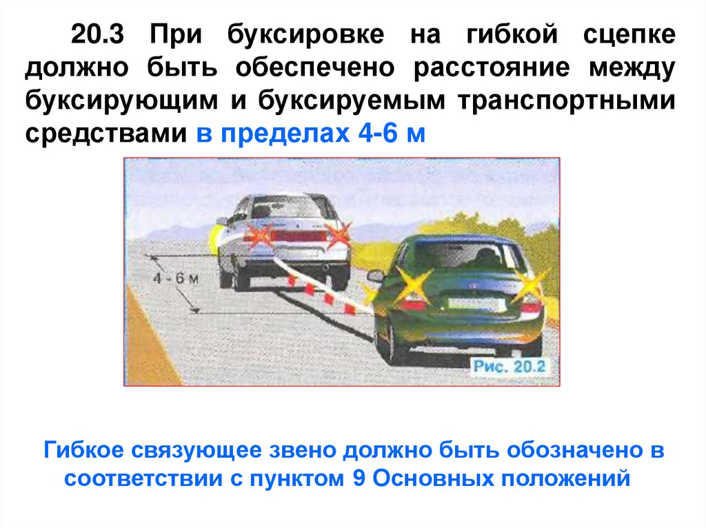 Для буксируемого автомобиля введены следующие пункты ПДД: