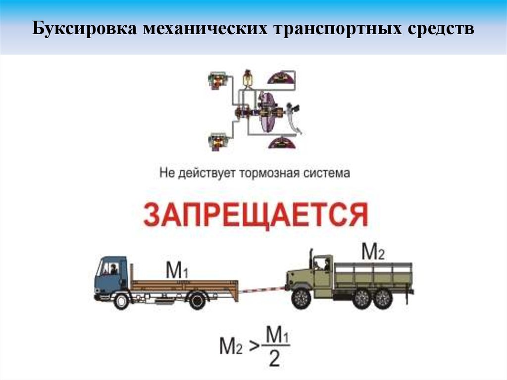 - Наказуемо законом, если буксируемое ТС с повреждёнными тормозами и тяжелее тягача.