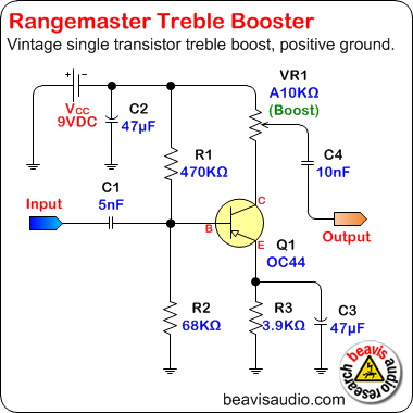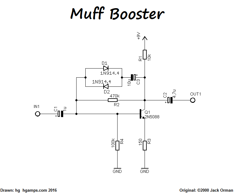 | Бустер для баc гитары своими рукамиНередко начинающие музыканты используют довольно дешевые инструменты, которые выдают посредственный звук и обладают довольно высоким фоном. Как результат, молодой басист получает на репетиции вместо хорошего звука глухой шум. Несколько исправить ситуацию может применение бустера, который я и предлагаю создать. Схема бустера проста и доступна для повторения даже новичками. От Вас не потребуется каких-то специальных навыков или дорогостоящего оборудования. Описанное ниже устройство действительно работает и превосходит по качеству бустеры, встроенные в бас гитарные процессоры, до которых я смог дотянуться. До момента создания этого устройства я никогда не занимался радиоэлектроникой, оборудование, навыки и знания у меня самые поверхностные — заранее предупреждаю, что мою статью не стоит считать истиной на все 100% и приношу свои извинения за возможные ошибки и неточности. Вообще на мысль спаять что-либо для бас гитары меня навел друг, тоже бас-гитарист, во время бесед об улучшении и изменении звука бас гитары. Как раз в это время я и нашел схему бустера, сборку по которой я и проводил. Для изготовления бустера нам обязательно понадобятся некоторые компоненты, а также приспособления, которыми мы будем соединять нужные радиодетали в единую схему. Радиодетали без проблем можно купить в любом магазине радиотехники. Необходимые радиодеталиПройдемся поподробнее по необходимым нам радиодеталям: