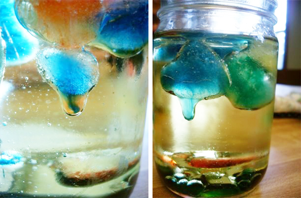 Более плотная вода опускается на дно контейнера, а менее плотное масло всплывает на поверхность. При этом моторное масло денатурируется.