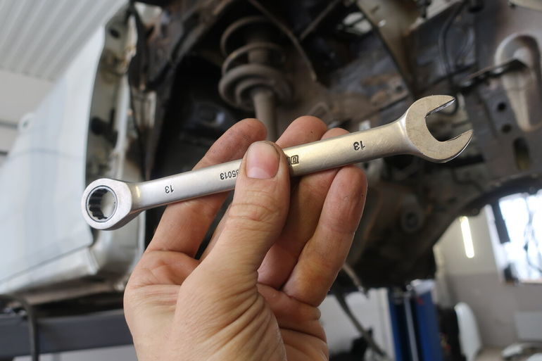 - Сначала попробуйте еще сильнее затянуть болт с помощью гаечного ключа, чтобы проверить, правильно ли он был затянут вначале.