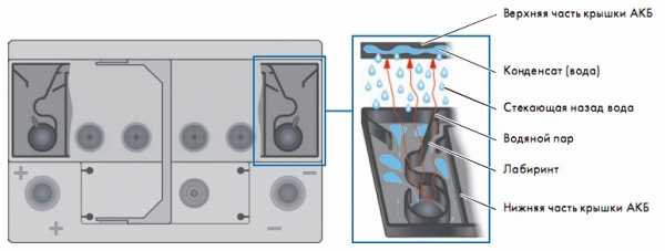 Протекающие химические реакции способствуют к образованию воды (Н2О). При повышенном уровне воды снижается плотность электролита.