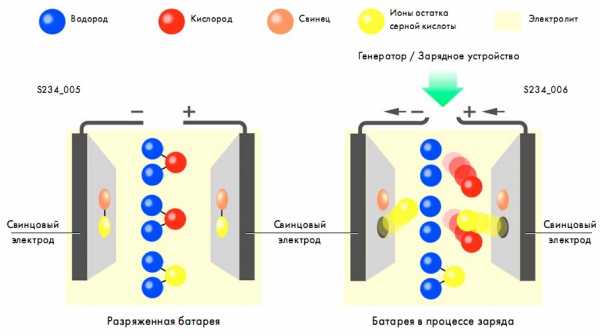 Так же при разрядке АКБ уменьшается количество серной кислоты в электролите и увеличивается количество воды. При зарядке так же происходит обратный процесс.