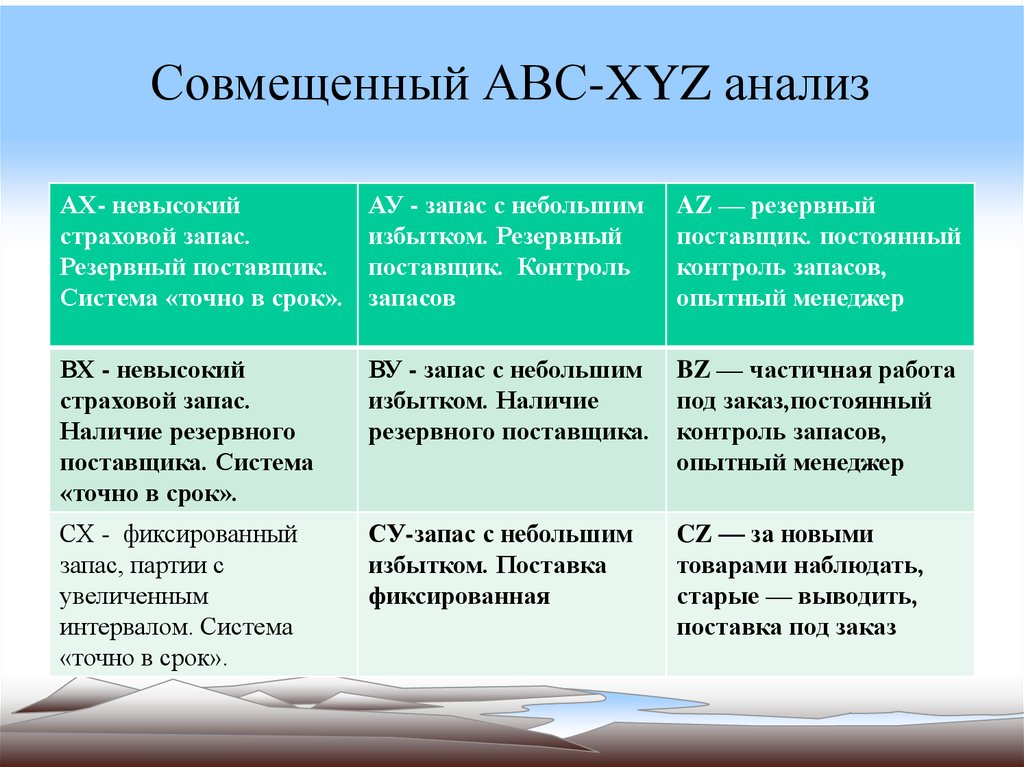 Метод строится по принципу классификации анализируемых ресурсов на 3 группы А, В и С: