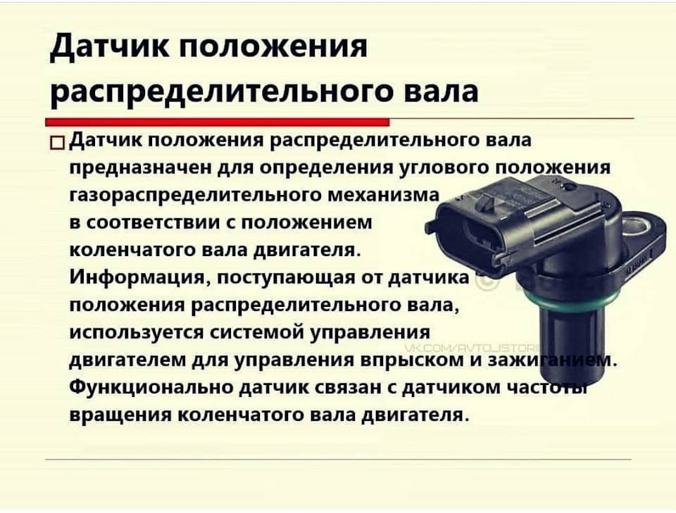 Этот датчик находится на головке блока цилиндров и измеряет частоту вращения