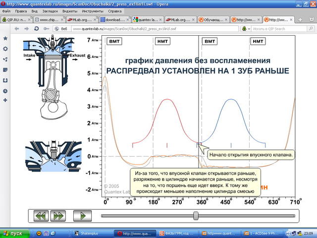 Раннее закрытие впускного клапана и снижение пикового давления в цилиндре во время резкого открытия дроссельной заслонки иллюстрируют износ кулачка впускного распределительного вала, вызывающий ограничение пути впуска.