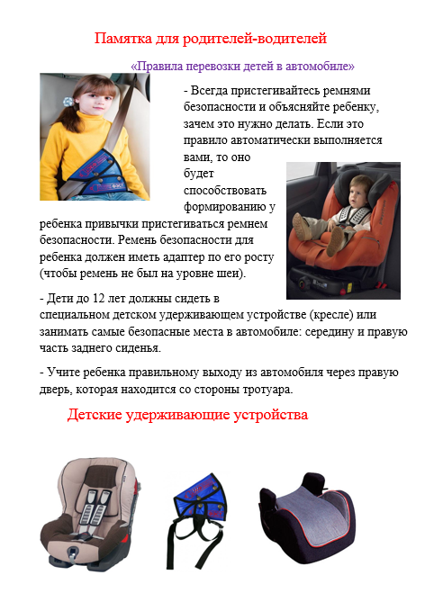 То есть, согласно внесенным изменениям, теперь в Правилах дорожного движения Российской Федерации установлено безальтернативное использование детских удерживающих устройств для перевозки детей в возрасте младше 7 лет, а также использование таких устройств либо ремней безопасности, предусмотренных конструкцией транспортного средства, для перевозки детей в возрасте от 7 до 11 лет включительно.