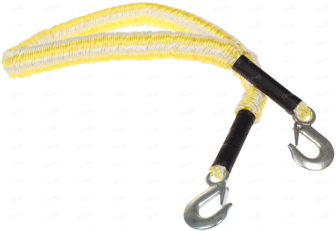 Впрочем, самый идеальный вариант троса для буксировки – это трос с наличием на нем крюков со специальными пружинами. Благодаря этим пружинам минимизируется вероятность того, что крюки слетят с места их зацепки при резкой нагрузке. Однако даже это не спасет вас и водителя буксируемого автомобиля, если сшивка возле крюка будет непрочной. В таком случае трос может просто оторваться, тогда как крюки так и останутся висеть на автомобиле. Качественный шов можно легко определить даже путем визуального осмотра: свидетельством надежности троса является треугольная форма сшивки, или же наличие прострочки крест-накрест.