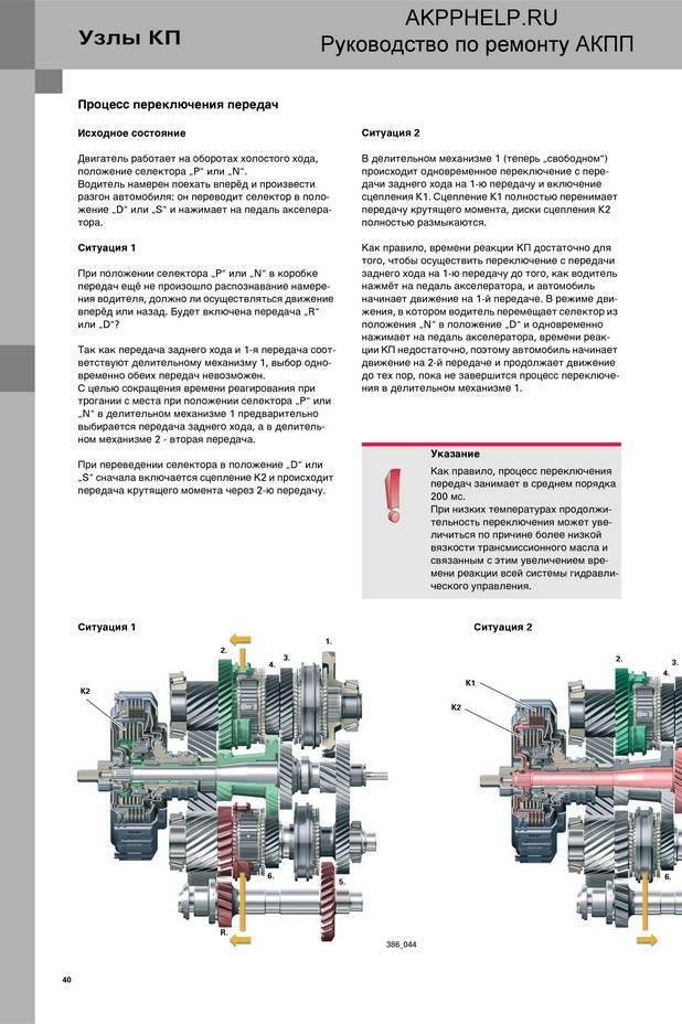 Для этого агрегата существует два поколения комплектов сцепления. Автомобили, выпущенные в июле 2011 года или ранее, будут использовать установку поколения 1. Автомобили, выпущенные с августа 2011 г. и позднее, будут использовать поколение 2. Комплекты не являются взаимозаменяемыми. Всегда сообщайте VIN поставщику запчастей, чтобы убедиться, что используется правильный комплект. Следуйте процедуре настройки зазора сцепления, включенной в комплект. Неправильная установка осевых люфтов сцепления K1 и K2 приведет к заеданию сцепления, развальцовке и/или отсутствию зацепления!