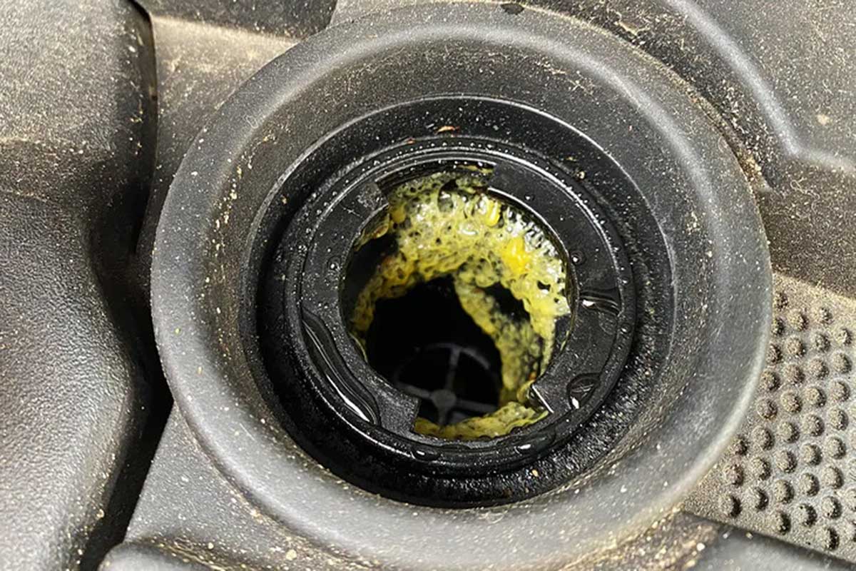 Проверено масло сегодня необходимо долить снял крышку заливной горловины и она была покрыта бело-зеленой слизью что может быть причиной этого на 56 плите 2.