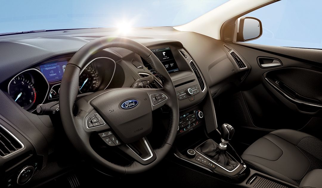 Передняя панель Форд Фокус выделяется металлическими накладками на дефлекторы вентиляции. С деталей можно отметить серую прострочку сидений, точку доступа Wi-Fi (можно одновременно подключить до 10 устройств) и современную мультимедийную систему Ford SYNC 3 на основе 8″ сенсорного дисплея. Система одновременно поддерживает Android Auto и Apple CarPlay, что так же послужило плюсом. С дополнительных систем безопасности и ассистентов водителю числится:
