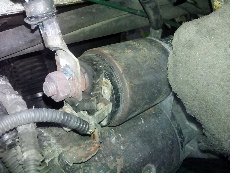 Если стартер закреплен на двигателе посредством дополнительного кронштейна, то его также необходимо отсоединить.