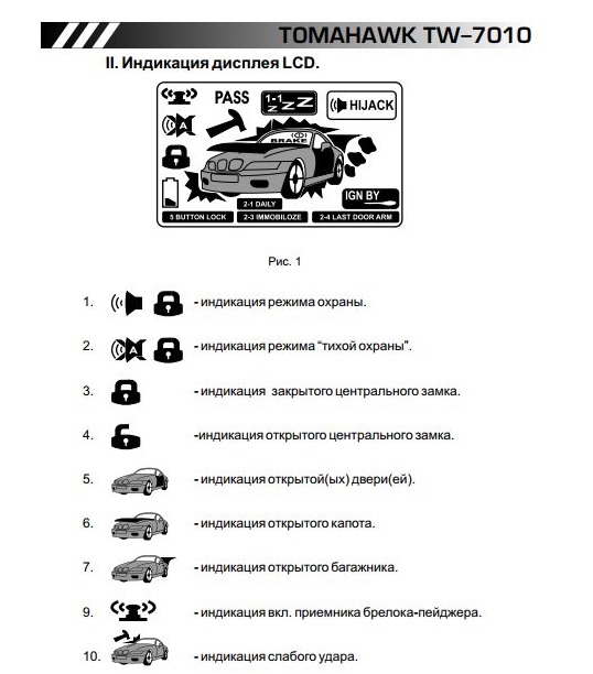 - Основные функции автосигнализации Tomahawk TW-9010